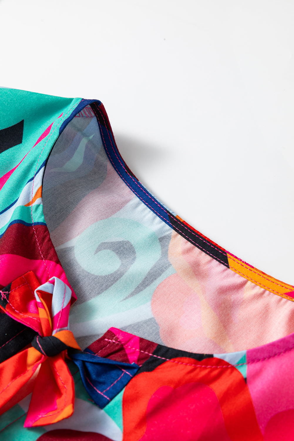 • This vibrant top features a bold and abstract print.