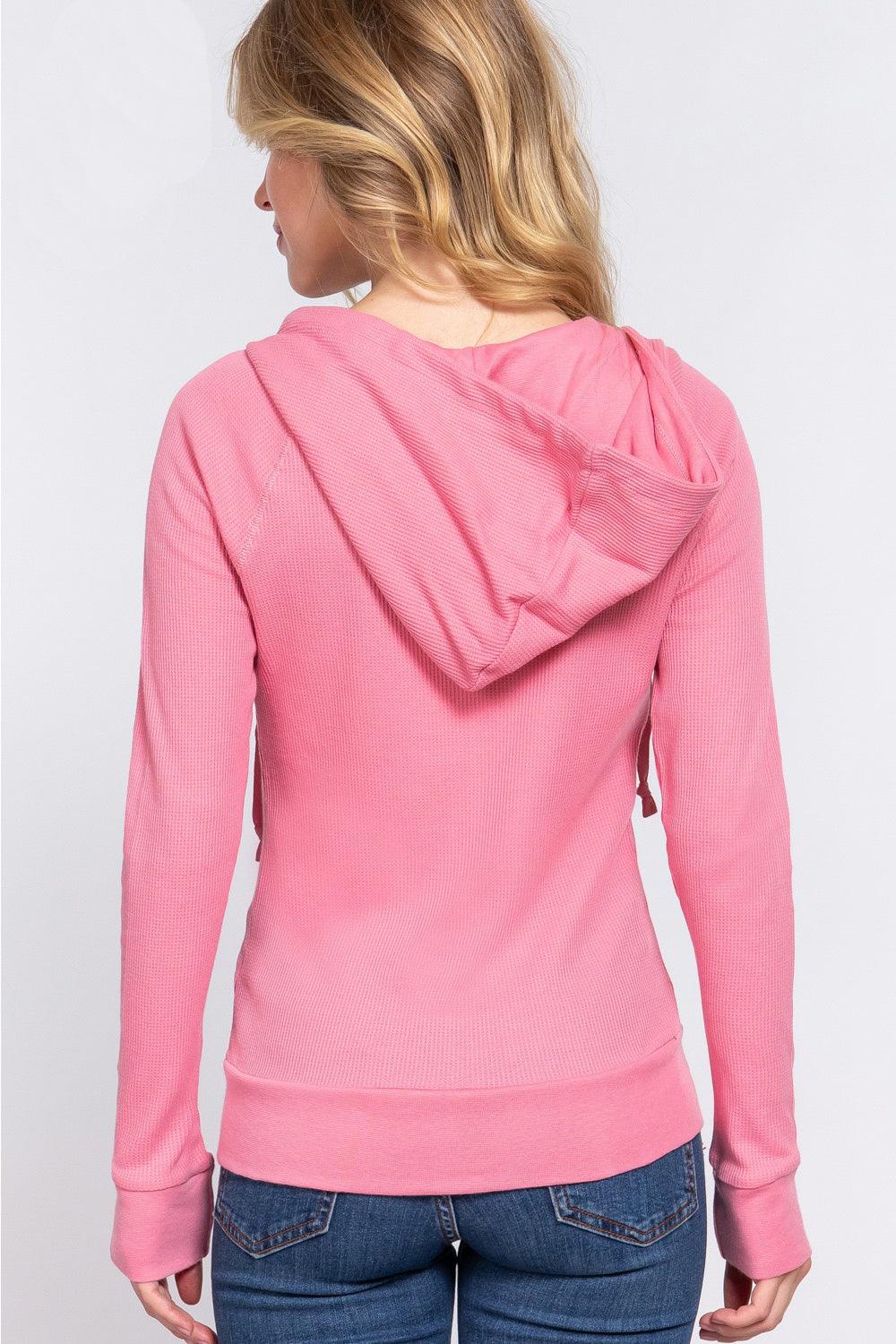 ACTIVE BASIC Waffle Knit Drawstring Zip Up Long Sleeve Hoodie