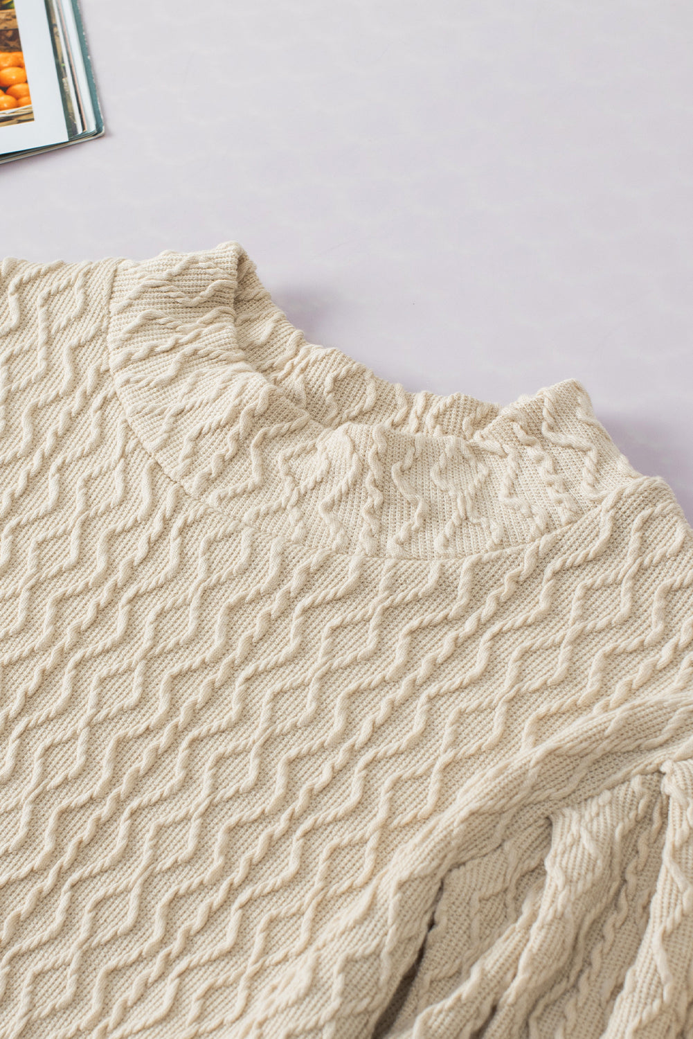 Apricot Vintage Textured Puff Sleeve Mock Neck Top