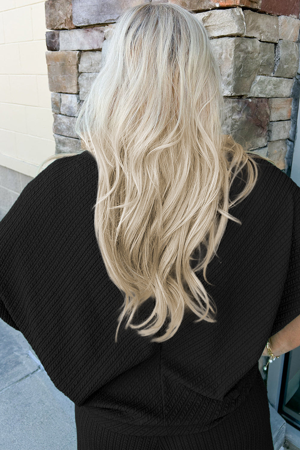 Black Textured Batwing Sleeve Tee Wide Leg Pants Plus Size Set